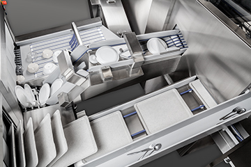Graden av automatisering av prosessene i et oppvaskrom avhenger ikke bare av typen og volum av oppvaskgods. Automatisering forbedrer alltid økonomien og reduserer personalbehovet. Helautomatiske oppvasksystemer krever ingen betjening på innmatingssiden for å mate oppvaskgodset inn i en båndoppvaskmaskin.
